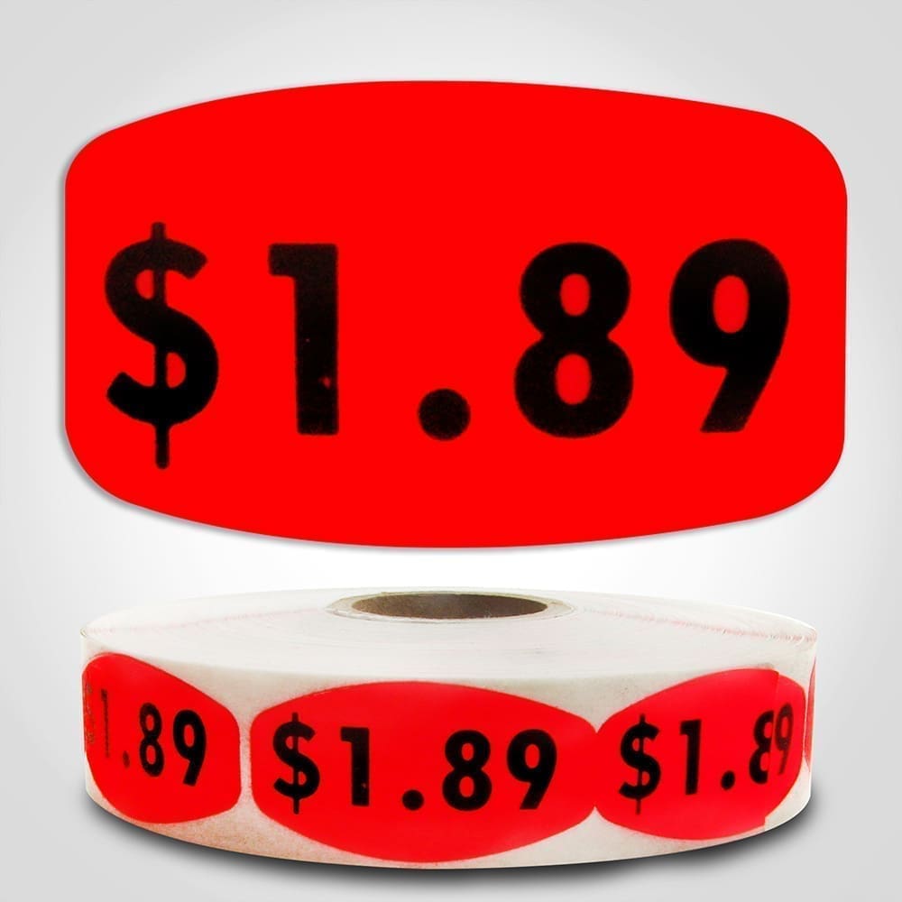 $1.89 Pricing Labels Red Dayglo Sticker, Black Print on a roll of 1000