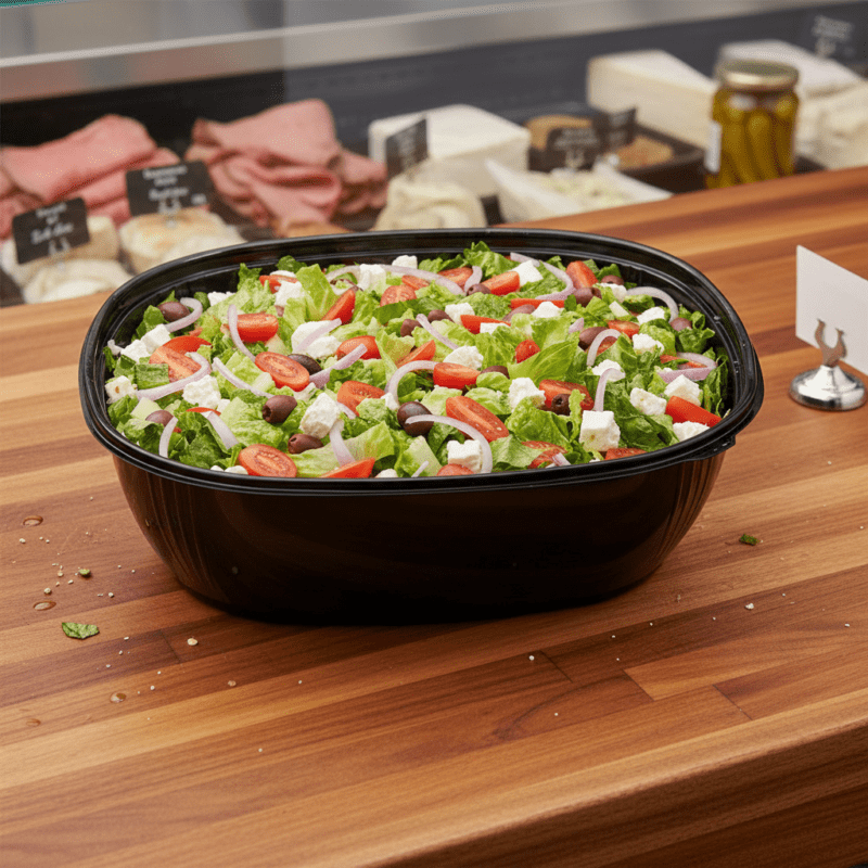 - Constructed from durable PET material to ensure a long shelf life, and make food products look their best.