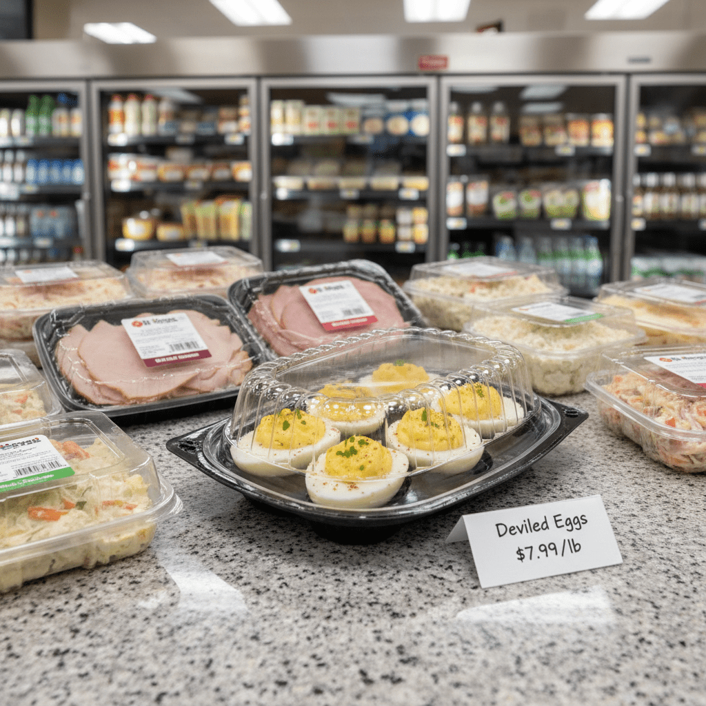 The perfect picnic treat deviled eggs. This 6 count deviled egg disposable tray will help grow sales this spring and summer with an attractive and easy to carry container. In addition the 6 count deviled egg tray comes with a clear tight seal lid.