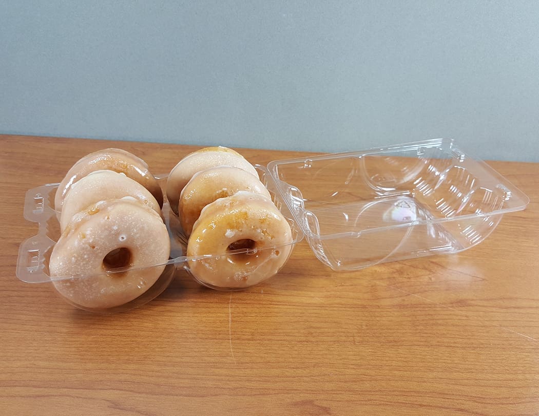 Our clamshell is designed to hold up to six donuts, keeping them fresh and intact during transport. The clear design allows your customers to easily see the delicious treats inside, while the sturdy construction ensures that your donuts arrive in perfect condition.