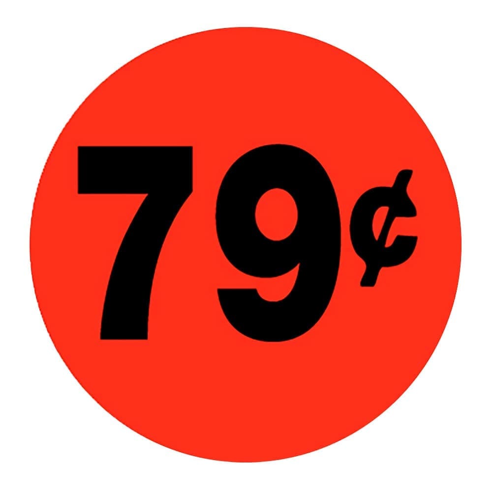 Attract budget-conscious shoppers and highlight unbeatable value with these eye-catching 79 Cent Pricing Labels! Measuring 1.5″ and featuring bold black print on a bright red background, these round labels effectively advertise the incredibly low price point of your products, potentially leading to increased sales and a higher perceived value.
