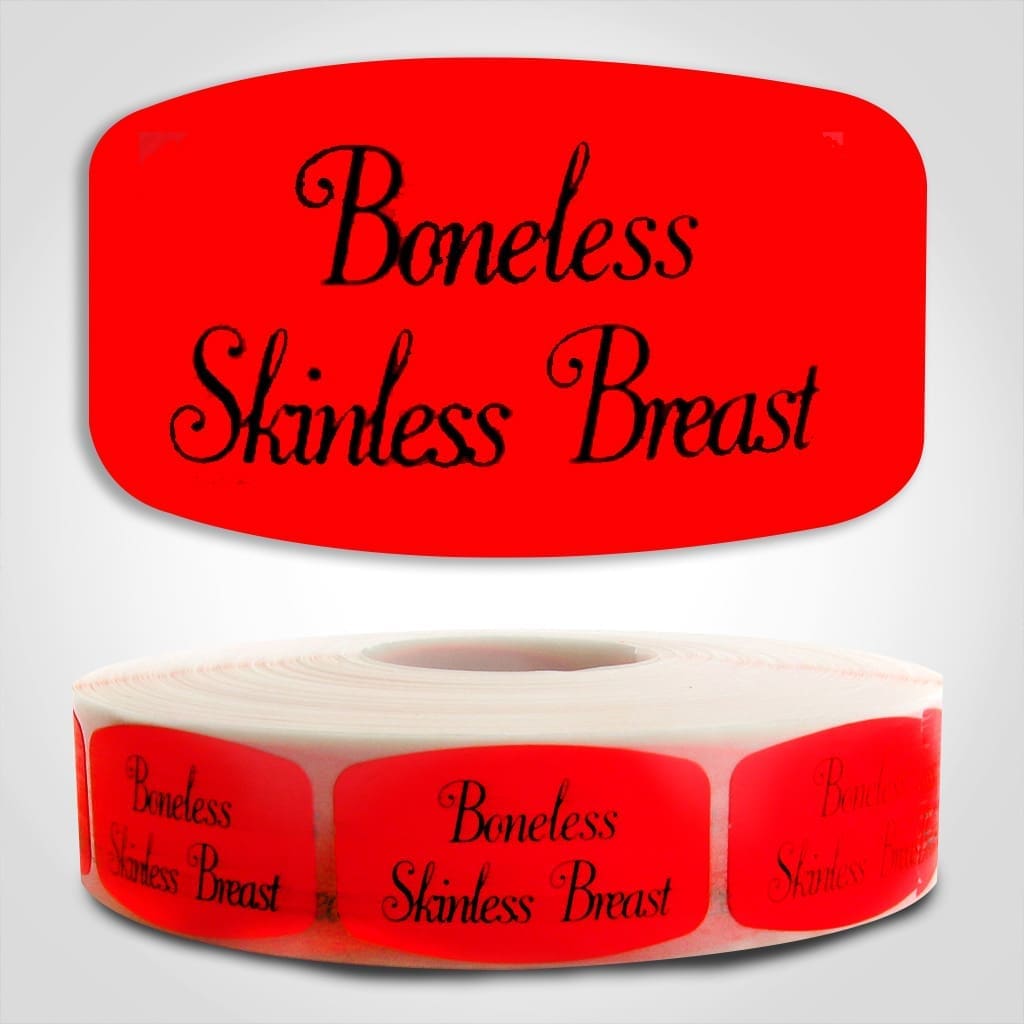 Simplify your customers’ lives with these bright red adhesive labels featuring “Boneless Skinless Breast” in clear black print. This essential label instantly communicates the convenience of this popular cut, perfect for quick and delicious meals.