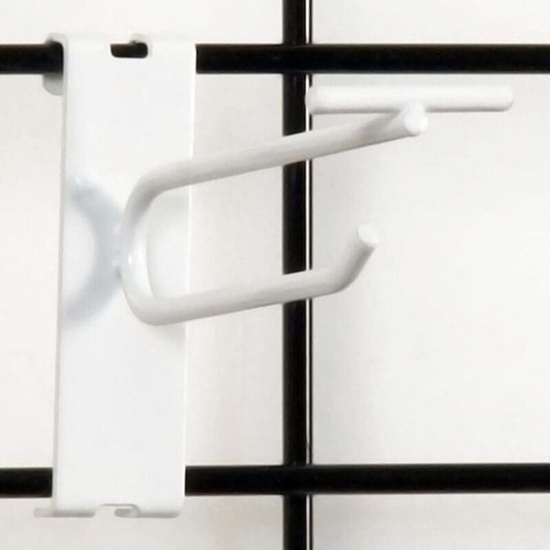 Gridwall scanner hook is 4″ long. Fits 3″ on center grid panels. White. Galvanized metal wire hooks with quick back metal backplate for gridwalls. The two-piece design provides fast, straight entry under shelves or in loaded displays. Simply install the metal backplate into your gridwall and then attach wire hook onto backplate and click down to lock. The hook locks securely yet separates easily to reset. The metal wire flip scan hook with T-scan bar are perfect for hanging retail merchandise. These galvanized pegboard and slatwall hooks are compatible with Flip Scan Label Holders (sold separately). Advertise retail prices, branding, or display an item’s SKU number or UPC code. This sturdy and durable hardware can be used in a pegboard or slat wall. These multipurpose hooks are perfect for retail store, supermarket display fixture, convenience store, hypermarket, warehouse storage solution, wholesale megastores, shopping mall decoration, or for retail storage.