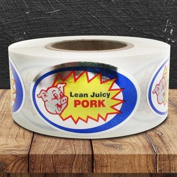 Lean Juicy Pork Foil Label, Butcher Sticker – 500/roll