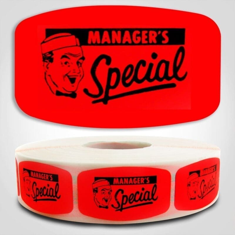 Spark customer interest and promote special offers with these eye-catching “Manager’s Special” Labels! Featuring bold black print on a vibrant red background, these compact 1.25″ x 0.81″ labels clearly display “Manager’s Special” in an easy-to-read format.