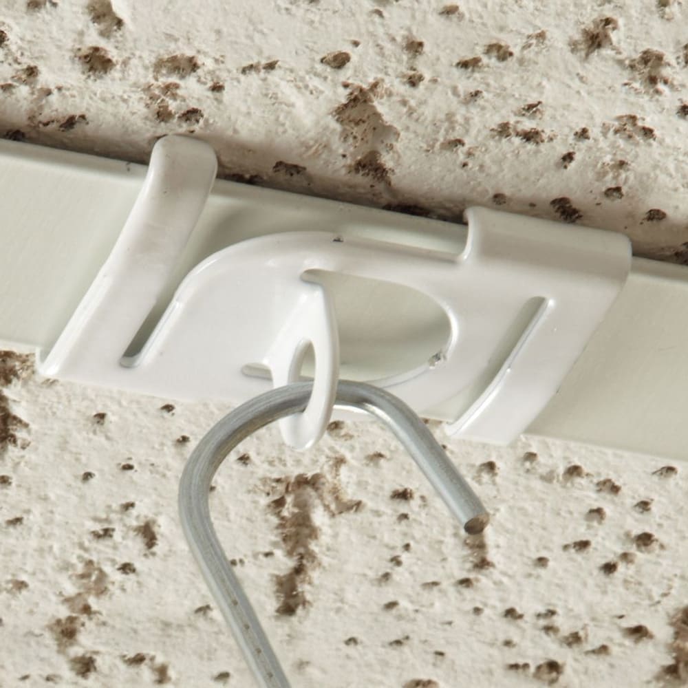 Superior grip. Super strong spring steel. Twist on to lock securely on ceiling grid. When locked in place, this is our strongest ceiling clip. No special tools required.