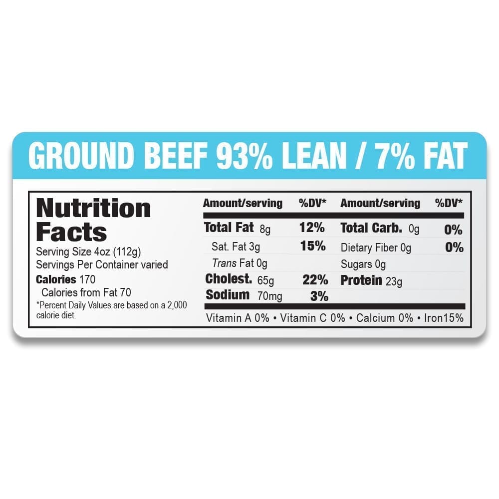 Nutritional Ground Beef 93/7 Label, Butcher Sticker – 1000/roll